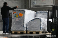米国の製薬大手ファイザーが開発した飲み薬「パクスロビド」4万4000人分が25日午前、仁川国際空港貨物ターミナルに到着し、関係者たちが輸送車両に積み込んでいた。