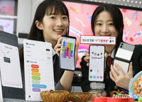 ソウル市鍾路区のLGユープラス無人店舗では14日午前、中高生の自己管理と学習を支援する10代の若者専用スマートフォン「U+Zプランフォン」を、コンパニオンらが紹介した。