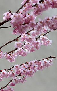【NEWSIS】春の雨となった13日、釜山市水営区にある培花学校の校庭では桜の花が咲き、人々が足を止めていた。