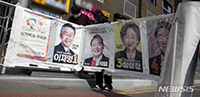 釜山市蓮堤区蓮山洞では10日午前、道路脇に掲示されていた第20代大統領選挙のポスターの撤去作業が行われた。