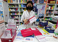食品医薬品安全処が「新型コロナ自宅検査キット追加供給」を表明してから二日目の7日午前、ソウル市内のある薬局で、薬剤師が新型コロナの自宅検査キットの空箱を整理しているところ。この薬局は、今月3日に自宅検..