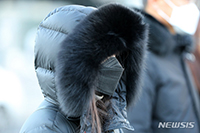 ソウルで朝の最低気温がマイナス9度まで下がった17日午前、ソウル市鍾路区の世宗路交差点付近の横断歩道では、ファー付きダウンコート姿信号を待つ市民らの姿が見られた。