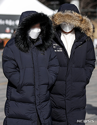気温が0度を下回る寒さが続く13日午後、ソウル市内を行き交う厚手の防寒着姿の市民。