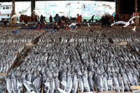 済州周辺の海域で一つの大型まき網船団が水揚げしたサワラが7日未明、競売を通じて委託販売された後、整理作業が行われた。この日販売されたサワラは480トン(約15万尾)、金額は20億ウォン(約1億900..