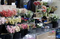 全国の花の価格が高騰している中、ソウル市瑞草区の花卸売商店街では10日午前、商人たちが客を待っていた。価格高騰の原因は、新型コロナウイルス感染症の影響で花の需要が減少したとき、園芸自体をあきらめた農..