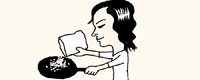 フライパンに残った油っぽさは、小麦粉を入れてから水洗いすると、小麦粉が油分を吸着するので、楽に落とすことができる。