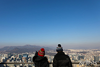 二十四節気の「小寒」を翌日に控えた4日午後、ソウル市竜山区の南山から望む、青く晴れた空の様子。