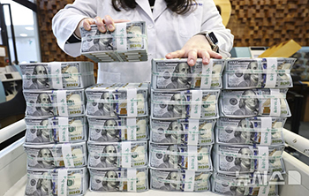 【NEWSIS】米ドル表示の外国為替平衡基金債券(外平債)の新規発行および運用収益で先月の韓国の外貨準備が増える中、ソウル市中区乙支路のハナ銀行本店偽変造センターでは、行員がドル紙幣を調べていた。韓国..