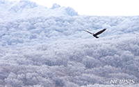 韓国各地で零下の寒さに見舞われた23日午前、済州の漢拏山1100高地付近では、樹氷が美しい光景を作り出していた。