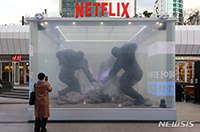 ソウル市江南区のCOEXに設けられた動画配信サービス大手NETLFLIX(ネットフリックス)オリジナル・シリーズ『地獄が呼んでいる』体験ゾーンで23日午後、撮影をする市民の姿が見られた。『地獄が呼ん..