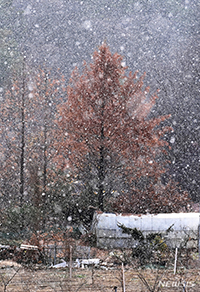 二十四節気の「小雪」に当たる22日午後、京畿道竜仁市二東邑の泉里に降る雪の様子。