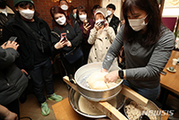 シンガポールの団体旅行客が19日午後、ソウル市竜山区の解放村にある酒屋「尹酒党」で、マッコリ作り体験をしているところ。この団体旅行客は、韓国-シンガポール間の旅行安全圏域(Vaccinated Tra..