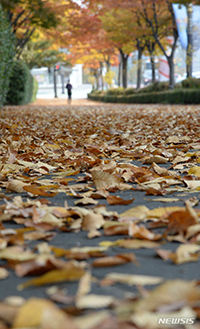 うららかな秋の一日となった1日、全羅北道全州市の全北道庁前の道路は、落ち葉で美しく彩られていた。
