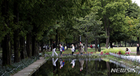 穏やかな秋の一日となった12日午後、ソウル市城東区のソウルの森では市民たちが散歩を楽しんでいた。