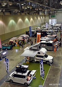 「2021キャンピングカー&レジャーフェスティバル」が開かれた7日、釜山市海雲台区のBEXCO第1展示場を訪れた人々がキャンピングカーを見て回っている様子。今月10日まで開かれている今回のイベントには..