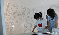 「ハングルの日」に当たる9日午前、ソウル市鍾路区の「世宗物語」で展示を見て回る市民の様子。