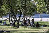 秋夕(中秋節。今年は9月21日)の連休最終日で秋分を翌日に控えた22日午後、ソウル市永登浦区汝矣島の漢江公園では、訪れた市民が休息を取っていた。