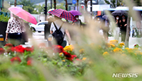 秋雨の降る6日午後、ソウル市中区の清渓広場では、傘を差した市民が花壇に咲くジニアやチカラシバの間を行き交っていた。