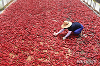 朝夕ほどよく涼しい天気となる中、京畿道竜仁市処仁区のある農家では、収穫したトウガラシの天日干しが行われていた。