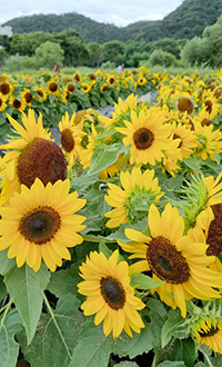蔚山市中区の太和江国家庭園では18日、丈などが大きくない性質を有する矮性(わいせい)種のヒマワリが花を咲かせていた。