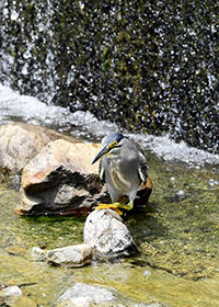 昼間の暑さが続いている11日午後、慶尚南道南海郡西面の小川で、夏鳥のササゴイがエサ取りをしていた。