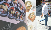 消費者物価の上昇により上半期の主要外食費も上がっていることが分かった9日の午前、ソウル市内の飲食店に掲げられたキムパプの価格表示。韓国消費者院の価格情報総合ポータルサイトによると、6月のソウル基準で、..