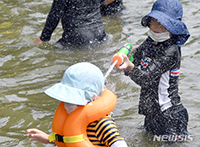 猛暑が続いている24日午後、全羅南道和順郡寒泉面の渓谷にて、水鉄砲で遊んで暑さを紛らわせる子どもたちの様子。