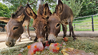 蔚山全域に猛暑注意報が発令された28日午後、冷凍フルーツを食べて暑さをしのいでいる蔚山大公園動物園(蔚山市南区)のミニロバ。