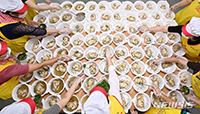 初伏(三伏の一つ、夏至後の3回目の庚〈かのえ〉の日)を二日後に控えた9日午前、京畿道水原市八達区内にある赤十字福祉館で分かち合いイベントが行われ、ボランティアメンバーたちが恵まれない人たちに配る参鶏..