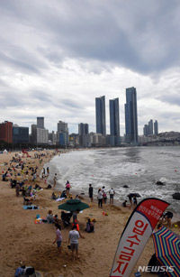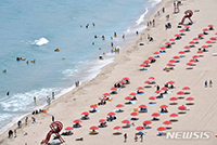 【NEWSIS】釜山地域の7つの海水浴場が全面オープンして初の週末となった4日午後、釜山市海雲台区の海雲台海水浴場には市民や観光客たちが訪れ、暑さをしのいだ。この日、釜山は梅雨が小康状態に入ったが、..