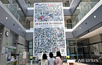 【NEWSIS】6・25戦争71周年をあすに控えた24日、釜山市の南区庁では、6・25戦争に参戦した国連軍の戦没勇士の写真で作った追悼の垂れ幕(縦9.55メートル、横5.2メートル)が掲げられ、注目を..
