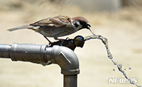 初夏の天気となった21日午後、達城公園(大邱市中区)の水道では、暑さにくたびれた1羽のスズメが喉を潤していた。