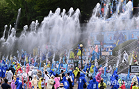 22日午後、京畿道竜仁市のエバーランドで「サマー・ウォーター・ファン」が開かれ、訪れた市民が涼し気な水の流れの中で涼をとっていた。