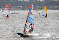 蒸し暑い中、漢江でウィンドサーフィン/ソウル