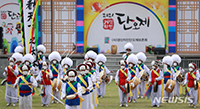 「オンライン2021慶山慈仁端午祭」が14日、慶尚北道慶山市慈仁面桂亭の「端午広場」で開かれた。写真は、慶北無形文化財第41号「輔仁農楽」の公演が行われているところ。