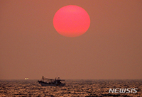 二十四節気の一つ「芒種(ぼうしゅ)」に当たる5日午後、済州市梨湖洞の海辺から見た美しい日没。