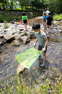 【NEWSIS】全国的に日中、気温が上昇すると予想された6日午前、京畿道城南市盆唐区の栗洞公園で、谷に降りて水遊びをするなどして暑さをしのぐ子どもたち。