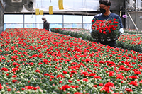 5月の「父母の日」「先生の日」など、カーネーションの需要が増える時期が近付いている。写真は29日午後、京畿道平沢市振威面の花卉(かき)農家で、カーネーションを出荷するため忙しく動き回る関係者の様子。