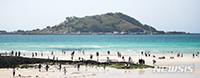 【NEWSIS】新型コロナウイルス感染症の感染拡大傾向が全国的に続いている25日午後、済州島の挟才海水浴場を訪れ、青い海を見ながら楽しむ観光客たち。疾病管理庁中央防疫対策本部は、新型コロナウイルス感..