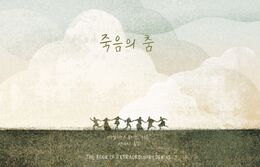 【新刊】セシリア・ルイス絵・著、クォン・イェリ訳『死のダンス』(海は長い島刊)、80ページ(1万6000ウォン) 観客が見下ろすステージで、俳優はハンカチを手に座っている。ハンカチに赤い血がさっとに..