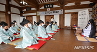 大邱市北区にある亀厳書院で13日午前、「地域連携人性教育体験学習」に参加した明徳小学校の児童たちが儒服姿で論語を学んだ。