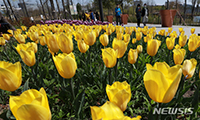 9日午後、ソウル市江西区のソウル植物園に用意された「春の花の道」にて、大きく花開いたチューリップ。